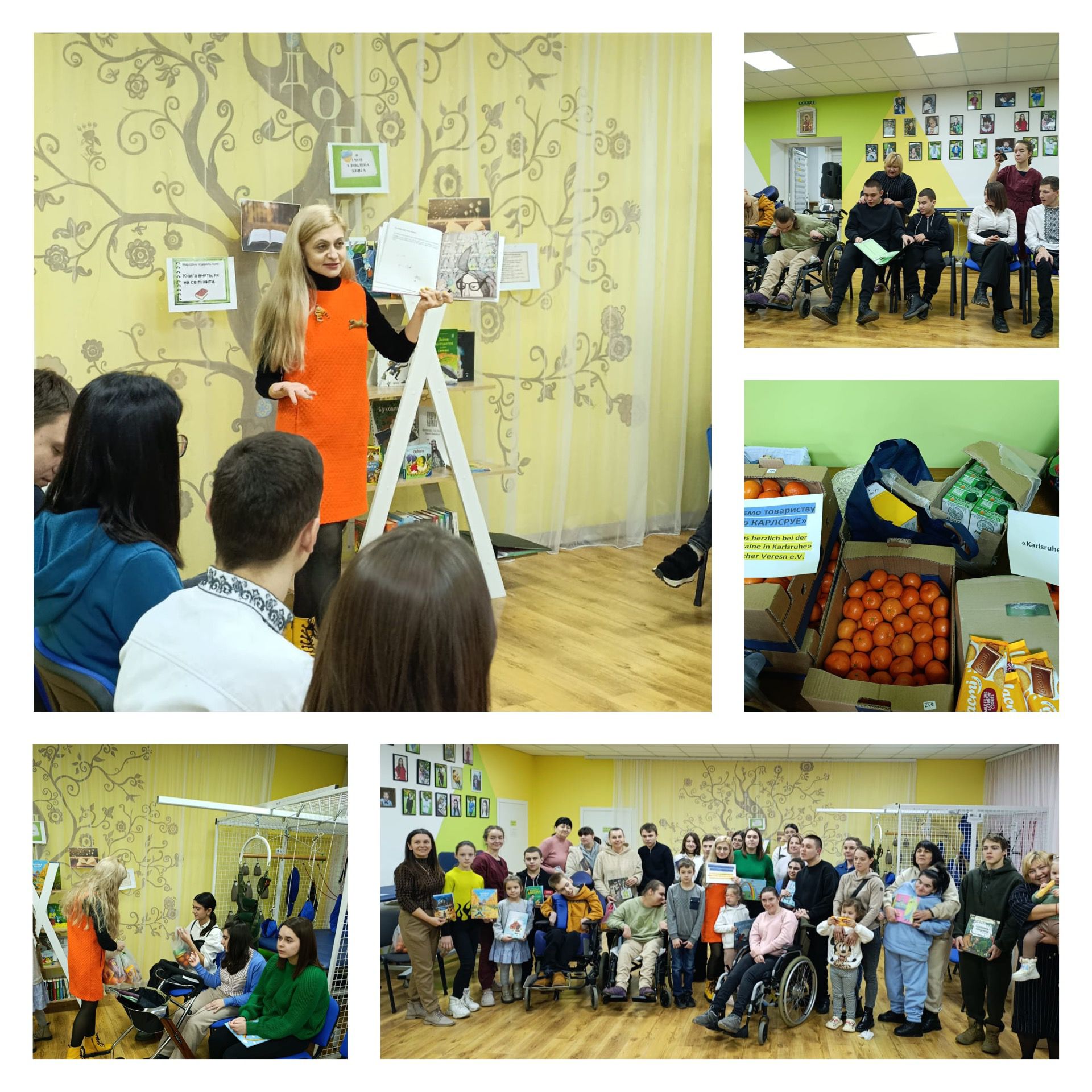 Als Erstes organisierte die Schriftstellerin und ehrenamtliche Helferin Chrystja Wengrynjuk eine besondere Leseveranstaltung mit Büchern, dazu Obst und Süßigkeiten für die gemeinnützige Organisation „Träume besonderer Kinder“, die Familien von Kindern mit Behinderungen unterstützt. Es war eine lebendige und gefühlvolle Veranstaltung mit Kindern und Eltern.