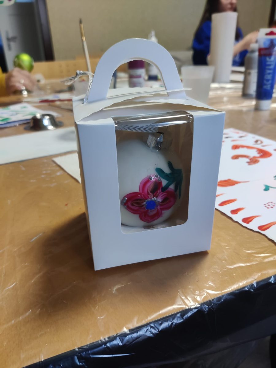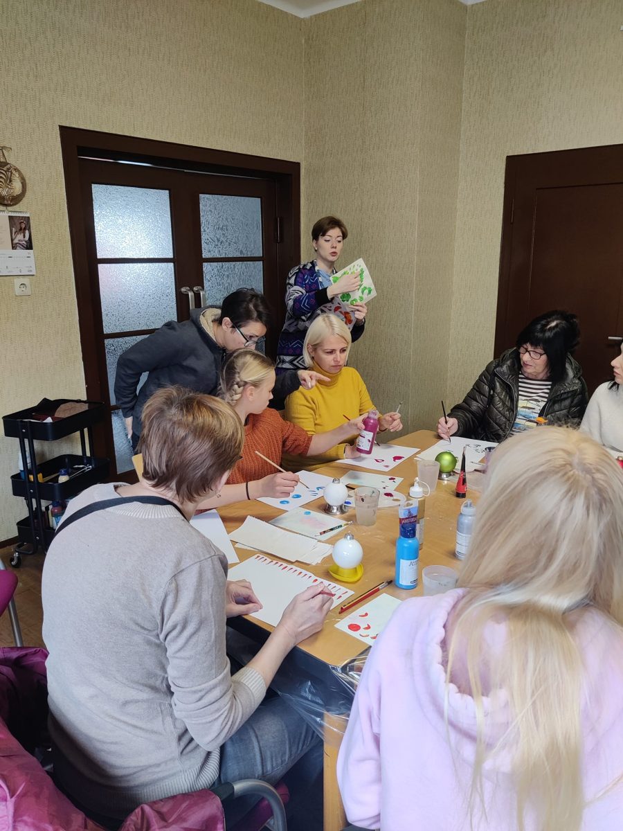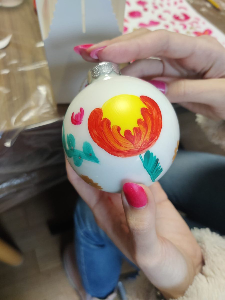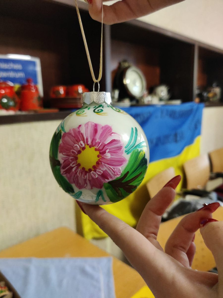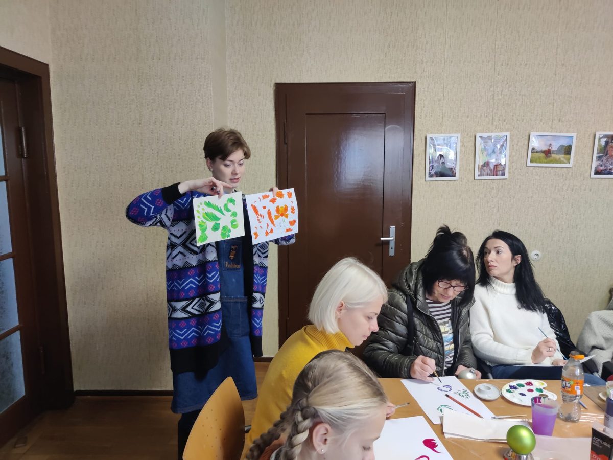 Der jährliche Petrykivka-Weihnachtsworkshop führte die Teilnehmer in die traditionelle Technik des „Übergangsstrichs“ und die Grundelemente – eine Blumenknolle, Blätter, Beeren – ein.