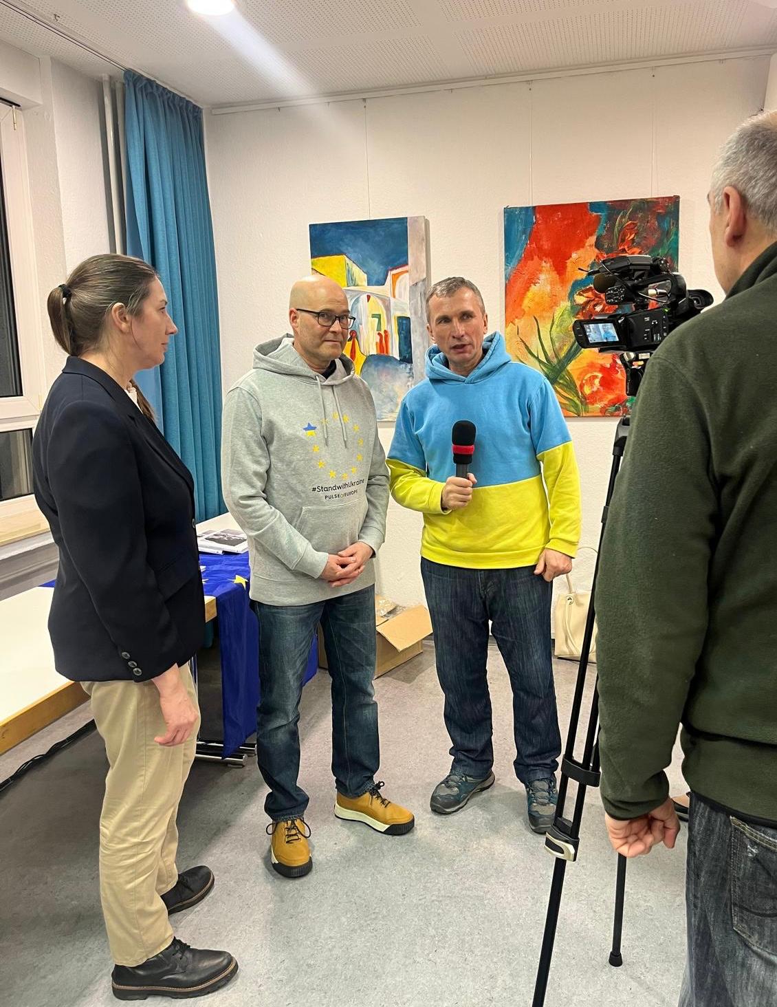 Im anschließenden Gespräch stellten die Besucher und Besucherinnen viele Fragen an den Fotojournalisten – zur journalistischen Arbeit und Ethik, zu seiner persönlichen Einschätzung der aktuellen Situation, zur Unterstützung der Ukraine aus Deutschland und zu seiner tiefen Bewunderung für die Menschen in der Ukraine. Weitere persönliche Gespräche entstanden im anschließenden Austausch danach.