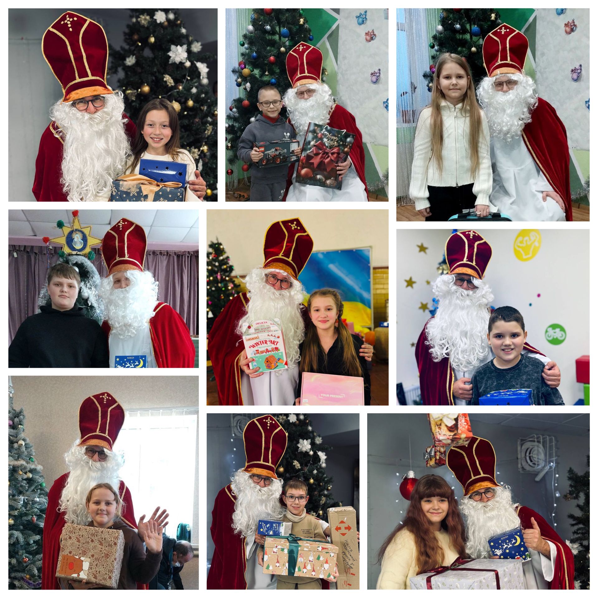 Wir haben das Projekt finanziell unterstützt und bei der Organisation der Fahrten sowie der süßen Geschenke für die Kinder geholfen. Außerdem hat die Lehrerin unserer Samstagsschule dafür mit viel Liebe ein Kostüm des Heiligen Nikolaus genäht.