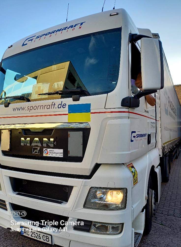 Dank unserer Zusammenarbeit mit der NGO „Born to Serve People“ in Sofiyivska Borshchahivka, Kyiv-Svyatoshinsky Bezirk, erhielt unsere Verein einen kostenlosen Transport, um die benötigten Hilfsgüter in die Ukraine zu liefern.