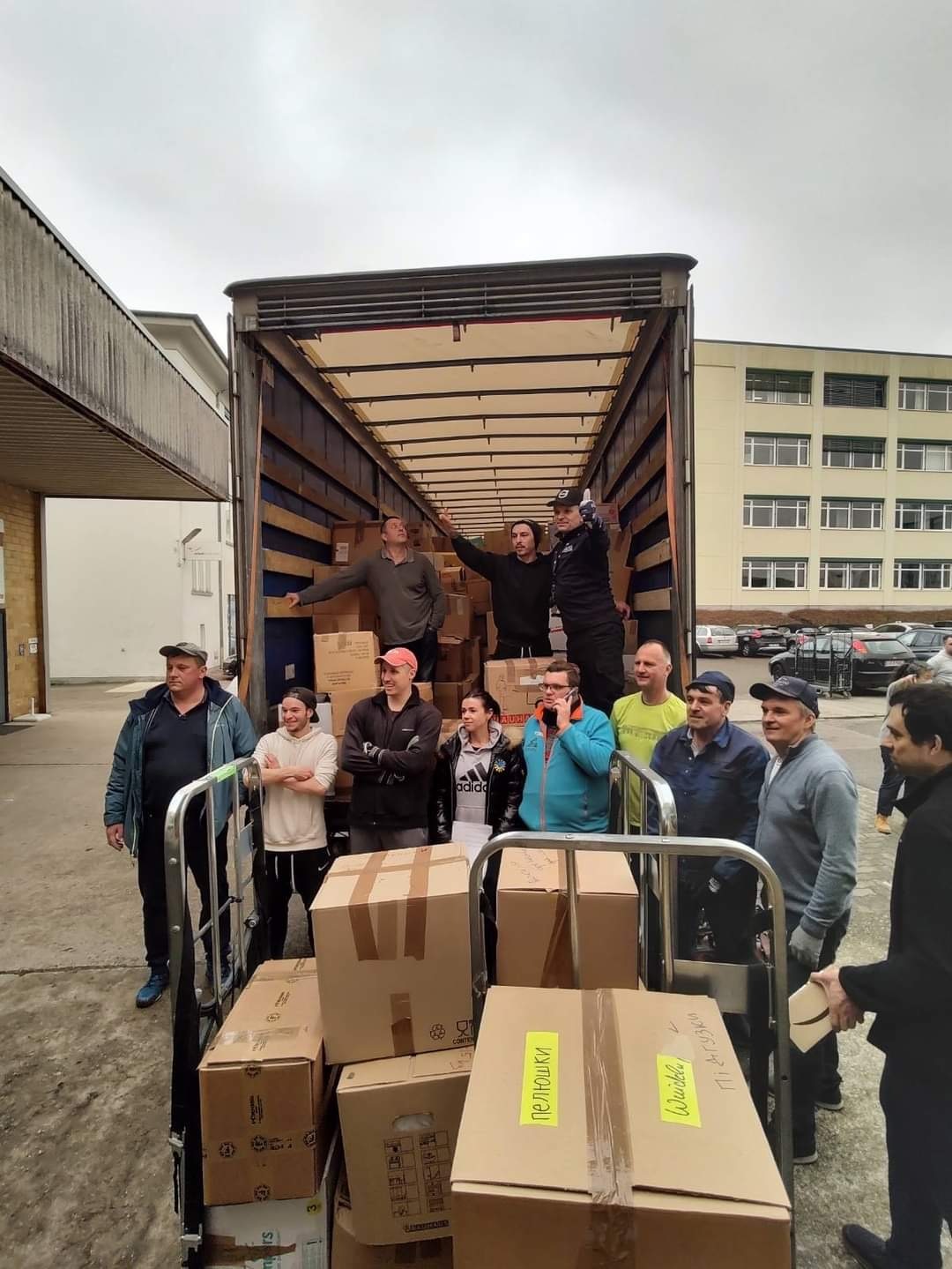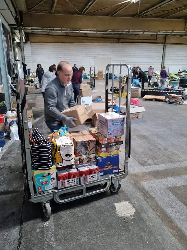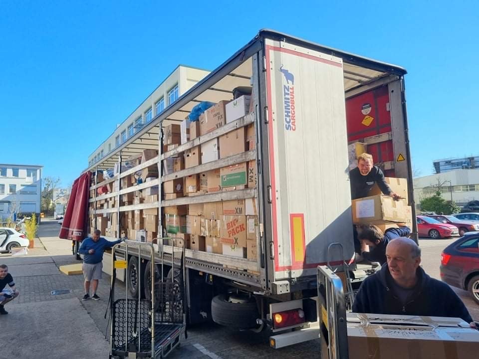 „In den letzten Tagen haben wir in unserem Lagerhaus mit wunderbaren Freiwilligen – Ukrainern, Deutschen und Russen (die auch die Ukraine unterstützen) – mehr als 100 Tonnen Hilfsgüter angenommen, sortiert, verpackt und in Kooperation mit unserem Logistikpartner Wladimir Skripnik und seiner Initiative in die Ukraine transportiert. Es geht um Lebensmittel, Medikamente, Hygiene, Kleidung, Kinderartikel, Lebensmittel, Schlafsäcke, Isomatten, Thermounterwäsche, Taschenlampen, Streichhölzer, Batterien, Powerbanks, Zelte, Stiefeletten, Unterwäsche etc.