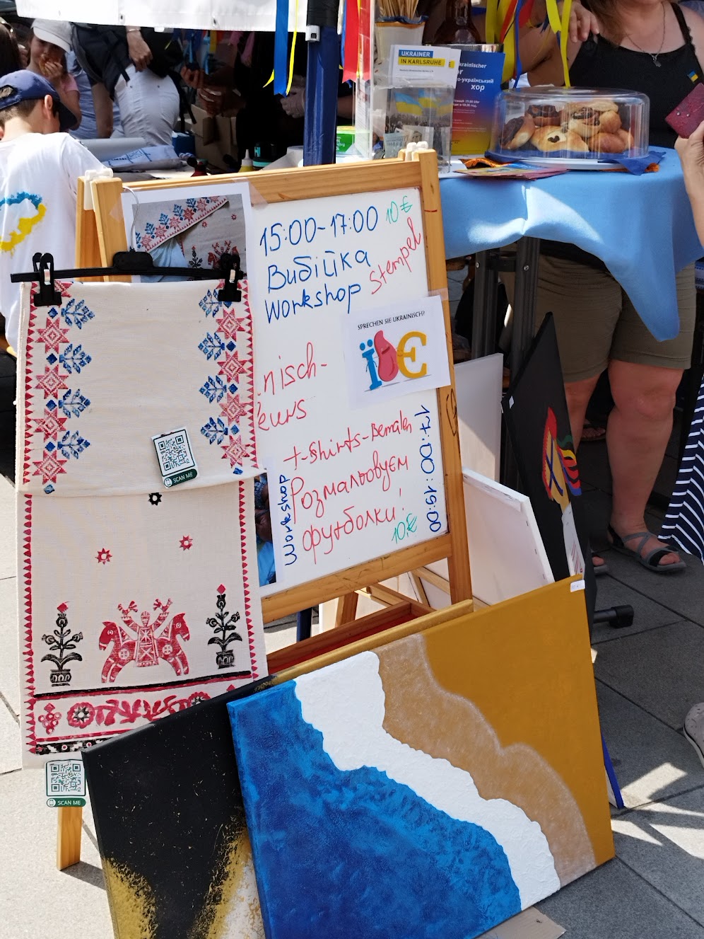 Im Laufe des Tages informierten wir in unserem ukrainischen Zelt über die aktuelle Situation in der Ukraine und über unseren Verein, stellten unsere Kultur vor und verkauften ukrainische Souvenirs und Leckereien.Uns besuchten sowohl die Karlsruher als auch unsere Landsleute.