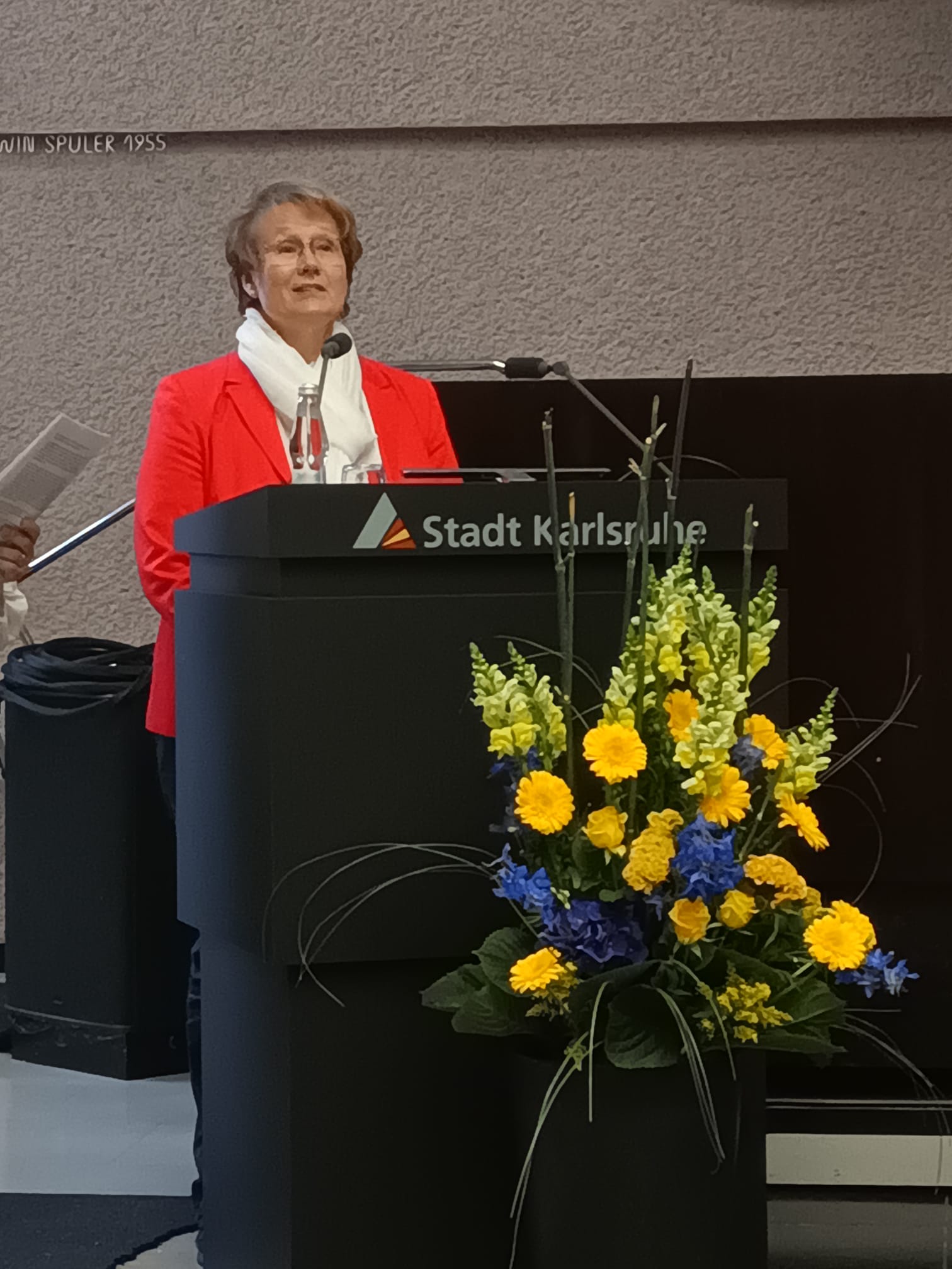 Nach dem Überreichen der Gastgeschenke für die ukrainischen Betreuerinnen und einem Gruppenfoto vor dem Karlsruher Rathaus lud Frau Luczak-Schwarz zu einem kleinen Stehempfang und Austausch ein.